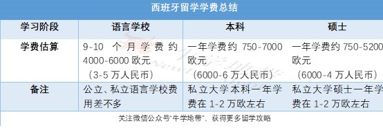 西班牙留学语言学校本科硕士留学花费一览表